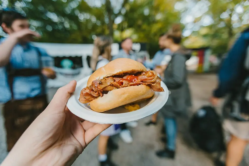 - Cash. There’s only one (not very reliable) ATM on site so you won’t be able to get cash out until you’re in the city centre. You’ll need cash for beers and delicious German food inside the halls, and for hot showers at the campsite