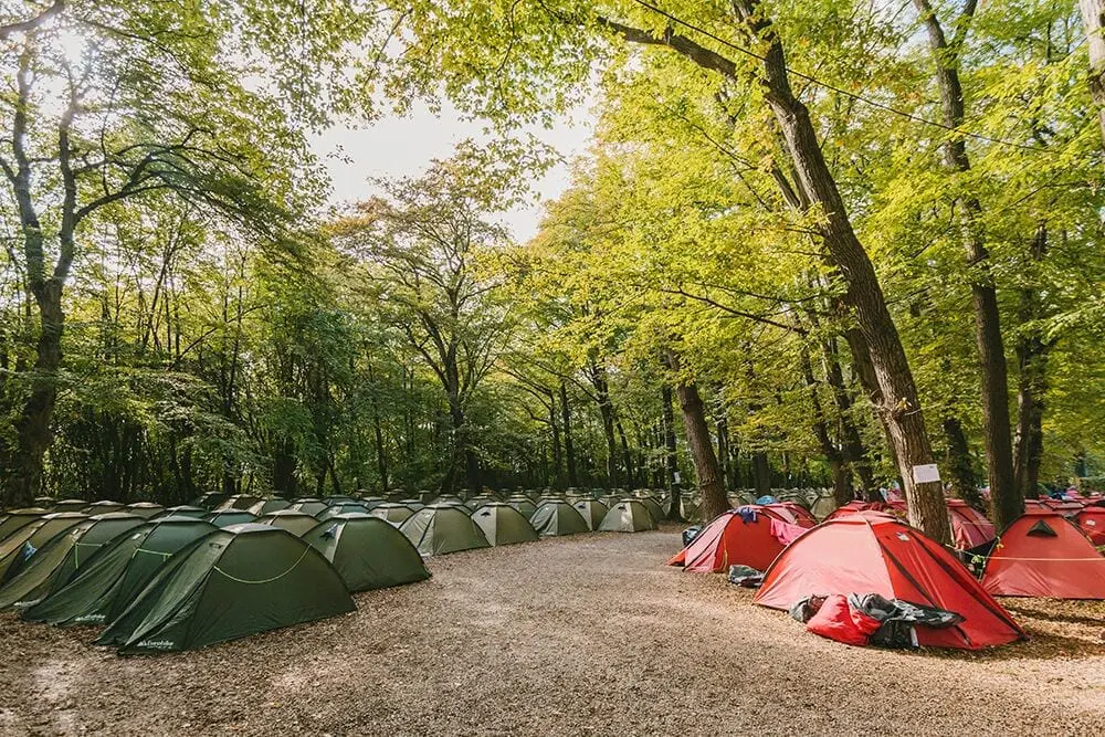 - It takes about 40 minutes to get to the beer halls from the campsite and it will set you back a couple of euros each way. We’d recommend buying group tickets as they work out cheaper per person. While you wait, you can stay at the campsite and pre-party, then head in with the different groups heading in throughout the day.