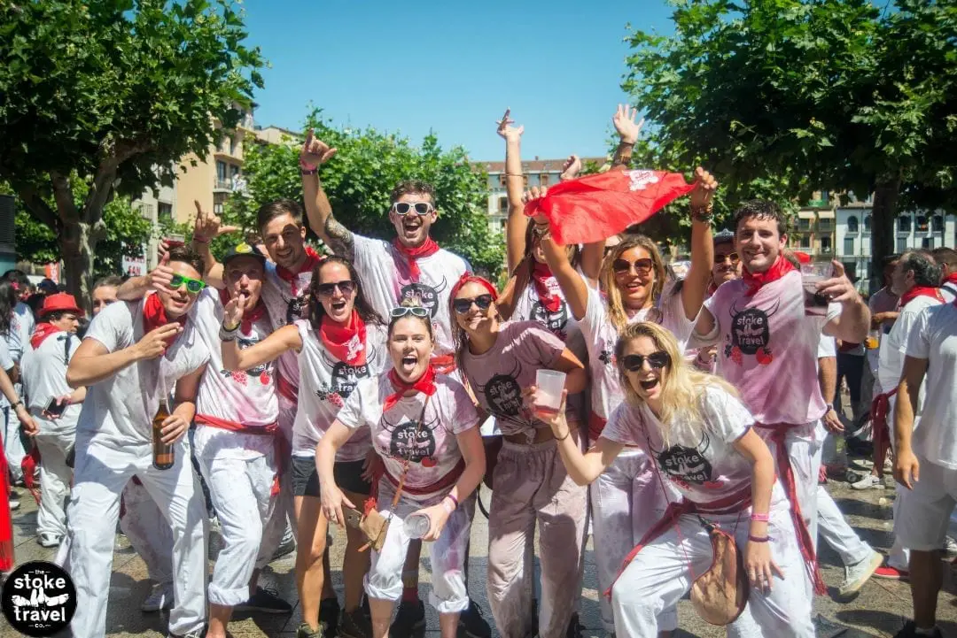 Stoke Travel’s Pamplona trip includes massive campsite parties, your stay in all-inclusive camping accommodation with camping mats and sleeping bags included, tasty hot and cold breakfast and bottomless mimosas every morning, open beer, wine and sangria bar between 10am and 10pm (for only €15/day), local cheese and wine tasting for your welcome party, an open-minded international crowd with new best friends from all over the world, Stoke chill out campsite, awesome guides to make your San Fermin extra special and one hell of an unforgettable experience!